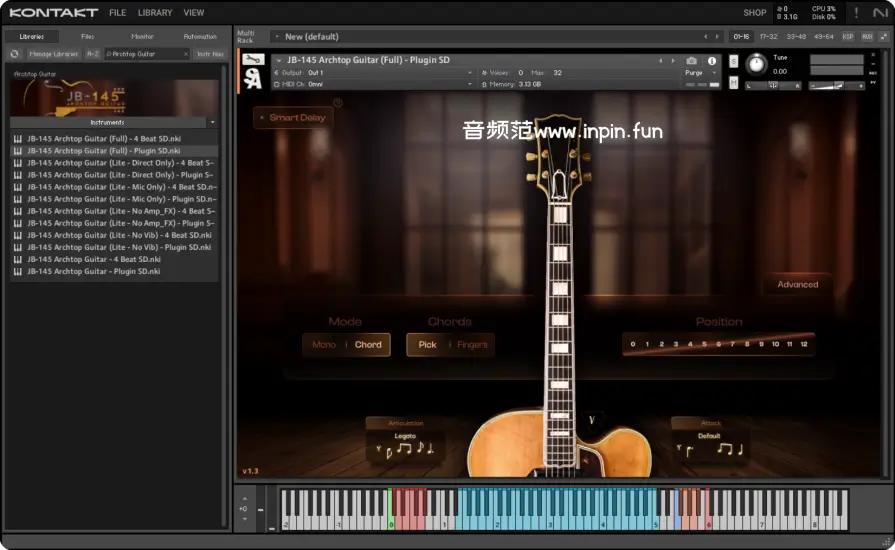 Straight Ahead Samples JB-145 Archtop Guitar 提供了丰富的、细腻的爵士吉他音色,适合多种风格的音乐创作。无论是专业音乐制作人,还是寻求高质量音源的编曲师,它都能够帮助提升作品的音色质感。