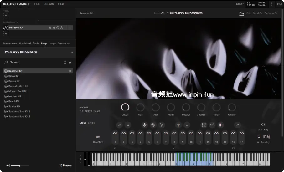 Native Instruments Leap Drum Breaks 是一款专为采样经典鼓点和节奏段落(Drum Breaks)而设计的音源扩展包,特别适用于嘻哈、放克、灵魂、电子等风格的音乐制作。Drum Breaks 是鼓组演奏中独立的节奏片段,通常以节奏突出的方式呈现,广泛应用于音乐采样和节拍制作。Leap Drum Breaks 通过提供各种复古、经典的鼓点素材,帮助音乐制作人快速创建节奏感强烈的音乐作品。