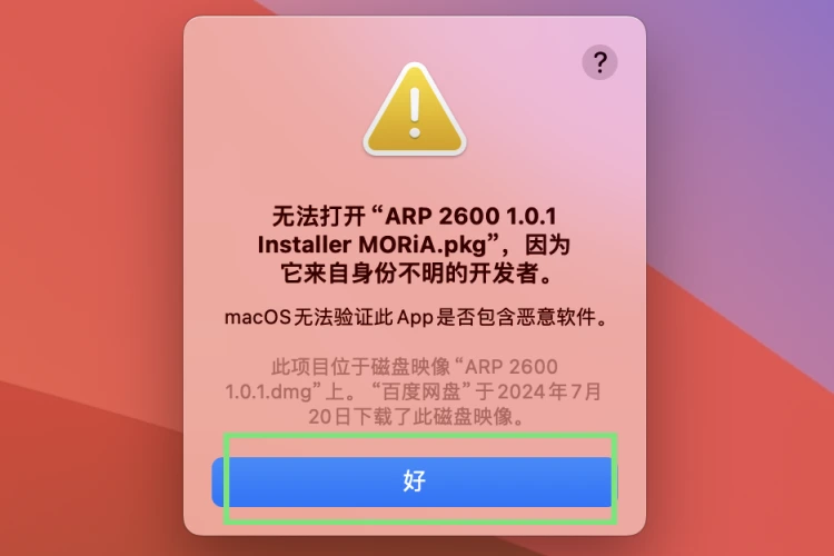 题外话:如果你想更方便,可以百度:Mac如何开启任意来源 关键词,打开任意来源选项,设置后不会再有来自身份不明的开发者的提示。