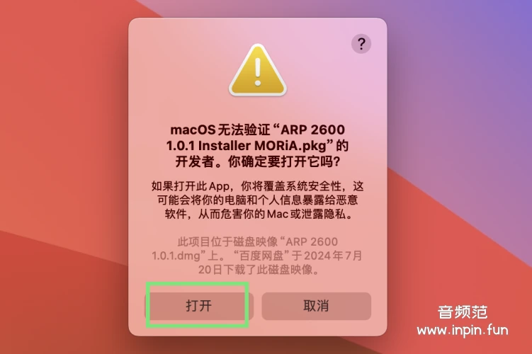 4.弹出窗口点击打开,即可正常打开安装程序或者打开软件。