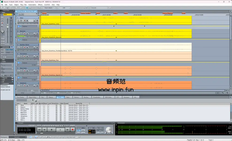 - 直观的多轨界面:Sequoia 16 的用户界面干净简洁,支持多屏操作,尤其适合需要同时处理大量音轨和效果的复杂项目。