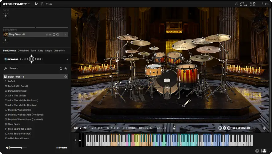 MixWave: Sleep Token – II 以惊人的精度和层次感,捕捉了 Sleep Token 标志性鼓手 “II” 的每一个细微之处。从多层力度采样、丰富的演奏法到精心雕琢的音色设计,这款音源为你呈现出前所未有的真实与沉浸体验,让你近距离感受那场神秘仪式背后的鼓声。