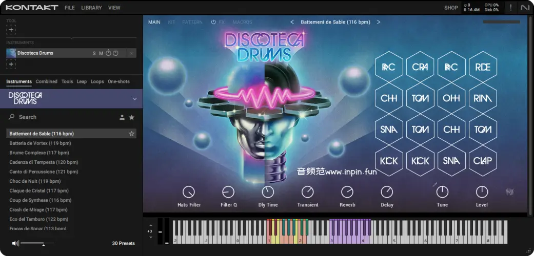 Native Instruments 推出的 Discoteca Drums 是一款专为复古未来主义音乐制作设计的虚拟乐器,灵感源自 1980 年代的意大利迪斯科(Italo Disco)风格。该乐器提供了丰富的鼓组和节奏,旨在为现代音乐制作注入怀旧而充满活力的元素。