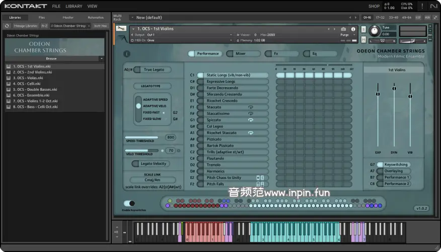此外,Odeon Chamber Strings 采用了创新的 Overlay Threshold Technology(叠加门限技术),提供流畅且富有灵感的用户体验。