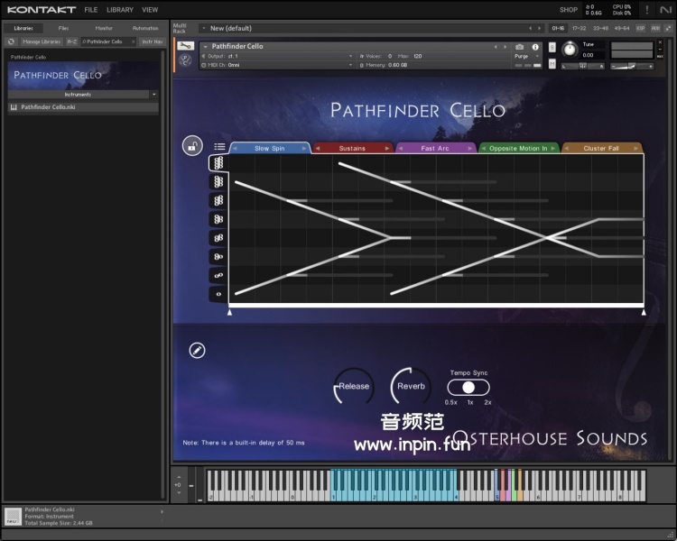Osterhouse Sounds 的 Pathfinder Cello 是一款节奏性的连奏音色库,非常适合创造富有表现力的短语和持续音。您只需输入一个和弦,它就会根据和弦的音符播放短语。这些乐句由“路径”组成的图形符号确定。