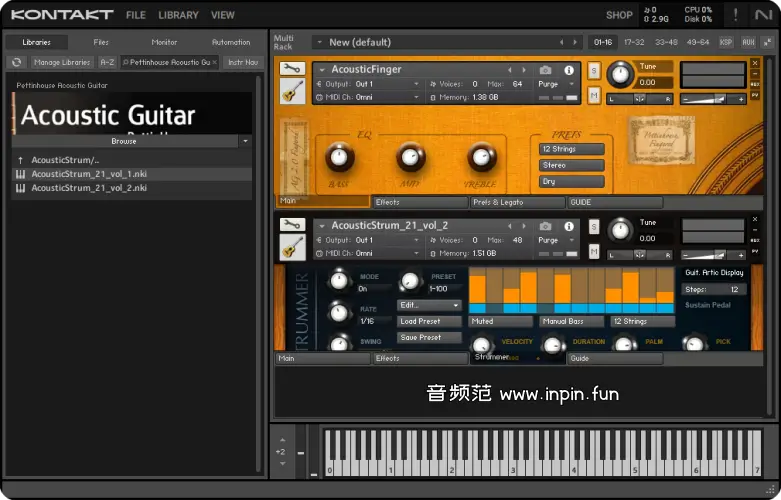 Pettinhouse AcousticGuitar 是一款专为 Native Instruments Kontakt 设计的高品质钢弦原声吉他虚拟乐器库,适用于流行、民谣、电影配乐、独奏等多种音乐风格。该音源以其真实的演奏表现力和丰富的演奏技法,成为音乐制作人和作曲家的理想选择。