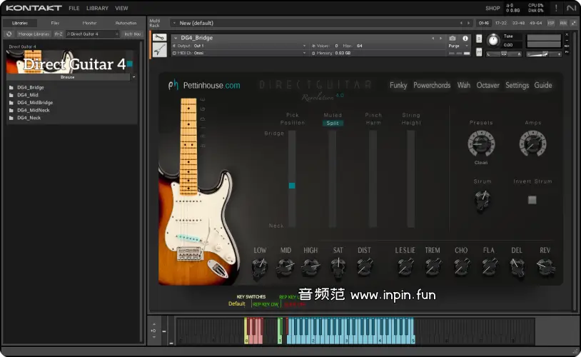 Pettinhouse DirectGuitar 4.0 REVOLUTION 是一款专为 Native Instruments Kontakt 设计的高品质电吉他虚拟乐器库,模拟了 Fender Stratocaster 的音色,适用于多种音乐风格,如流行、摇滚、放克、R&B、电影配乐等。