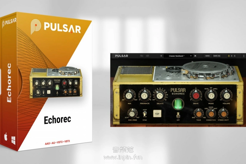 Pulsar Audio Pulsar Echorec 是一款基于经典 Binson Echorec 磁盘回声器的插件,旨在再现其独特的声音特性,同时增加现代数字音频处理的灵活性。Binson Echorec 是 1950 年代至 1970 年代之间非常受欢迎的回声效果器,以其独特的声音和长回声时间而闻名。Pulsar Echorec 插件忠实再现了这一经典设备,同时加入了一些现代功能。