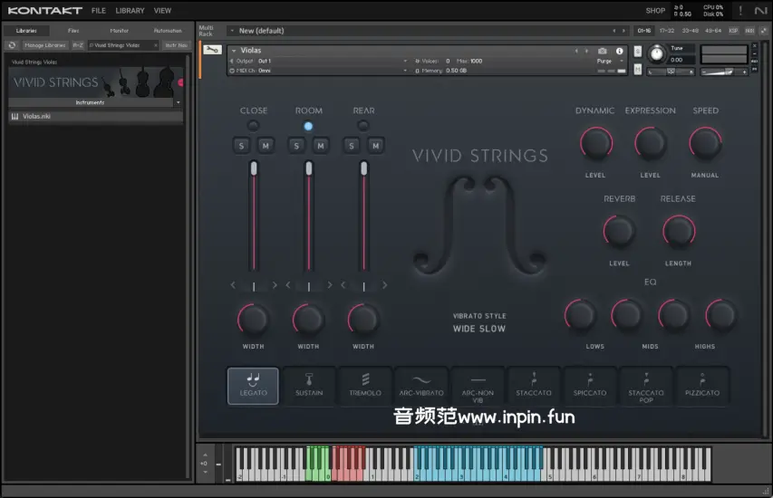- 温暖而丰富的中频:中提琴音色的核心魅力在于其独特的中频音域。Vivid Strings Violas 提供了从柔和到强劲、从轻柔到厚重的多样音色,既适合表现细腻的情感,也能够为乐曲的中频段提供强有力的支撑。