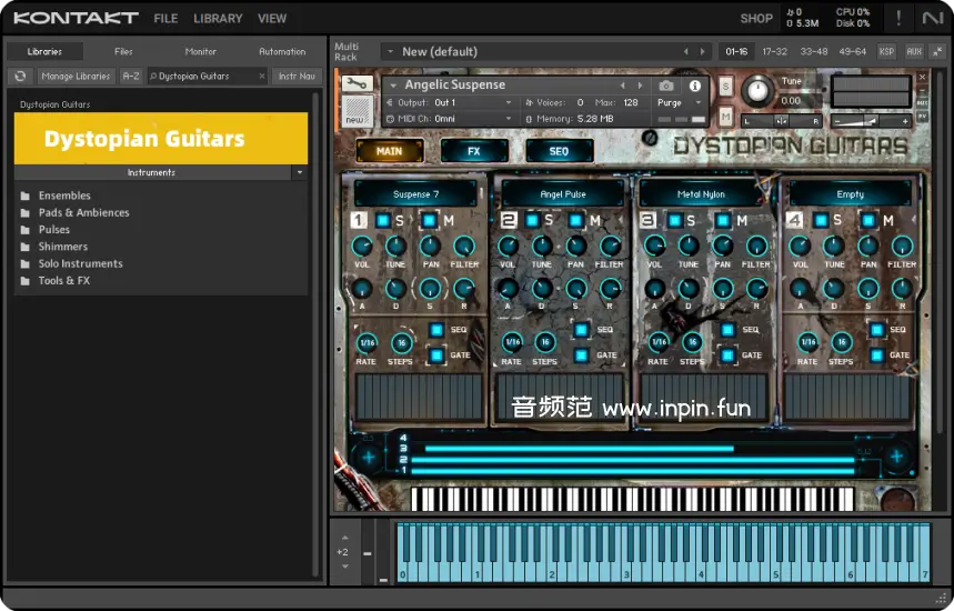PulseSetter Sounds Dystopian Guitars 是一个音色库,专门设计用于创造充满未来感、破碎和暗黑氛围的吉他声音。它为电影配乐、游戏音效以及其他需要“阴暗”或“末世”风格的创作提供了丰富的音色素材。这个音色库注重通过合成器和样本的结合来创造出具有实验性质的吉他声音,适合用于现代的音乐制作和音响设计。