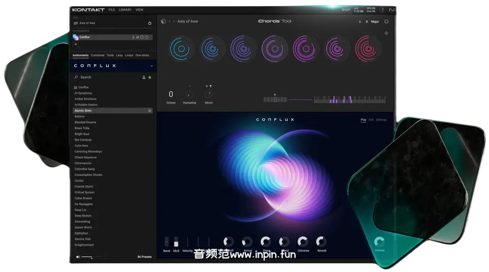 - 创意功能层:让创意流动起来。它们可与任何 Kontakt 乐器(新旧)配合使用。在我们的首发中,我们首先推出了拥有 MIDI 内容和随机化功能以及和弦(Chords)和乐句(Phrases),旨在激发新的想法,让你快速进入创作平台。