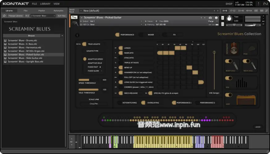 Screamin’ Blues 采用精准的智能演奏技法切换,基于实时演奏触发不同技法,同时结合最新的叠加创新技术(Overlay Innovations),带来高度动态化的实时演奏体验。这种设计确保了极致的真实感,使您仿佛沉浸在演奏之中,随时迸发灵感,创造属于自己的蓝调音乐魔法!