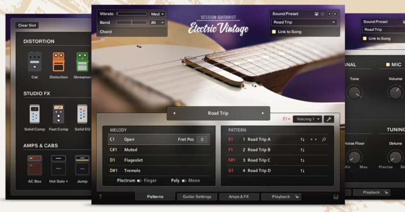 ELECTRIC VINTAGE 是与 drumasonic 合作制作的,drumasonic 是一家屡获殊荣的采样乐器团队,同时也是 ELECTRIC SUNBURST DELUXE 与 PICKED ACOUSTIC 音源的幕后制作团队。