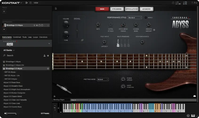 Shreddage 3 Abyss是一款为Kontakt设计的虚拟吉他乐器,它采用了一把定制的六弦电贝斯,声音深沉、震撼。它拥有超过1万个高品质的采样,每个采样都通过模拟管道DI录制。它还有一个强大的Shreddage 3脚本引擎,让你可以控制乐器的演奏回放、扫弦、技法映射和音色。它支持VST, AU, AAX格式和KONTAKT PLAYER