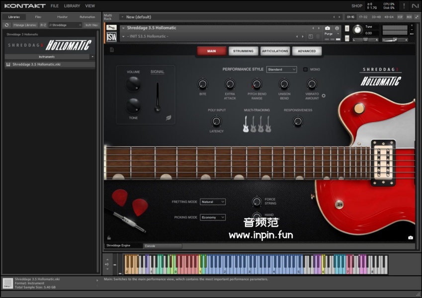 Impact Soundworks Shreddage 3 Hollowbody Electric Guitar (当前已升级Shreddage 3.5 Hollowbody) 是一款虚拟吉他乐器,旨在提供真实的音色和灵活的演奏选项,适用于各种音乐风格。