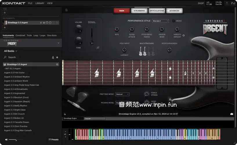 Impact Soundworks Shreddage 3.5 Argent 是一款强大的虚拟吉他音源,结合了卓越的音质、全面的演奏技巧和高度的灵活性,成为现代音乐制作中的必备工具。如果你希望在音乐中加入逼真的吉他演奏部分,这款插件会是你的理想选择!如需更详细的信息或使用建议,请随时告知。