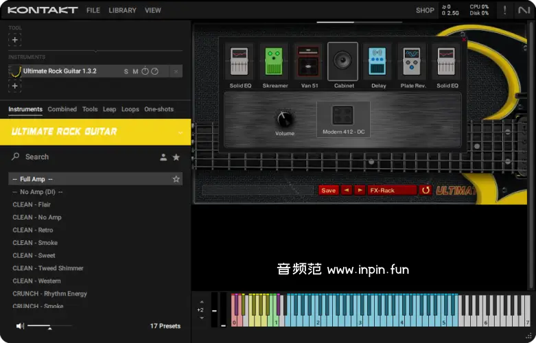 内置效果器:集成 Kontakt 的效果器模块,提供基本的音色塑形功能。官方建议结合专业的放大器模拟软件使用,以获得最佳音色表现。
