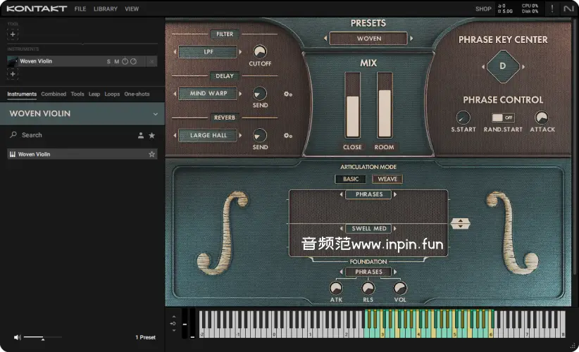 - 高质量录音:Woven Violin 采样自真实小提琴演奏,采用多层次的动态和细腻的演奏技巧,包括长音、颤音、快速颤音、弓法变化、滑音等。