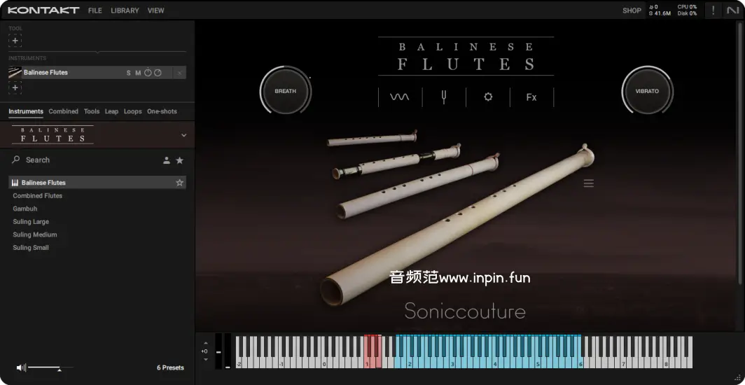 Soniccouture 的 Balinese Flutes 是一款为 Native Instruments Kontakt Player 设计的虚拟乐器,精确采样了巴厘岛传统竹制长笛(Suling)的音色。Suling 是一种竖吹式长笛,常用于独奏、与加麦兰(Gamelan)乐团合奏,或其他音乐组合中。