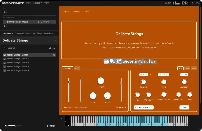 总的来说,Delicate Strings为音乐制作人提供了一个高品质、富有表现力的弦乐工具,适用于多种音乐风格和创作需求。