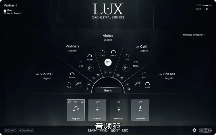 LUX Orchestral Strings 是一款专为影视/游戏配乐以及高端编曲所打造的虚拟弦乐库。其录制的是一个 70 人规模的交响弦乐队,置于专业配乐录音厅中录制,旨在提供“就像置身打分舞台”的真实感和空间感。该乐器以大编制、沉浸式音质、丰富技巧与流畅演奏响应为特点。
