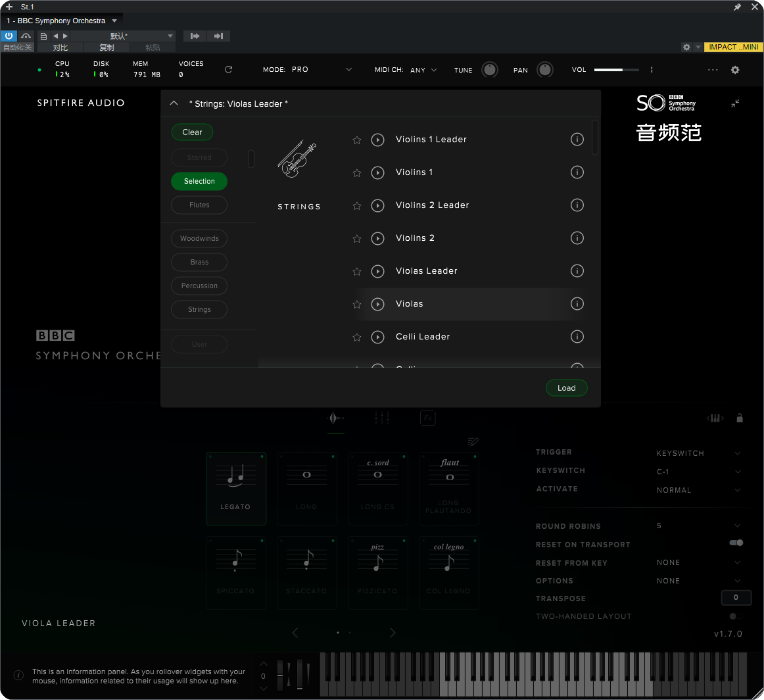 BBCSO 使用 Spitfire 自研插件加载,无需额外采样器。界面直观、可调节混响、动态、力度曲线,并支持 MIDI CC、NKS 及主流 DAW 自动化。