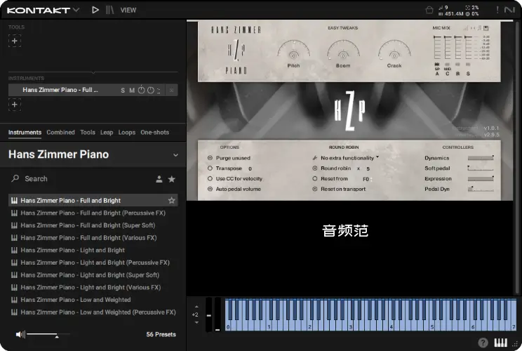 | 🎹 真实还原 Hans Zimmer 专属 Steinway D | 以极高保真度采样 Zimmer 的私人钢琴 |