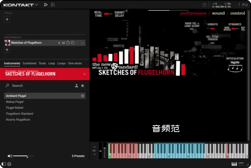 Flugelhorn 天然的音色特性在本库中被保留并强化,使旋律线更容易传达情绪。 - 动态自然