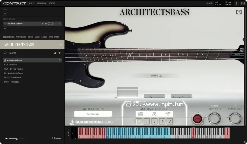 ArchitectsBass 是由 SubMission Audio 开发的一款虚拟低音乐器,专为现代音乐制作人打造,特别适合金属核(metalcore)、渐进金属(progressive metal)和 djent 等重型音乐风格。以下是其主要特点和优势: