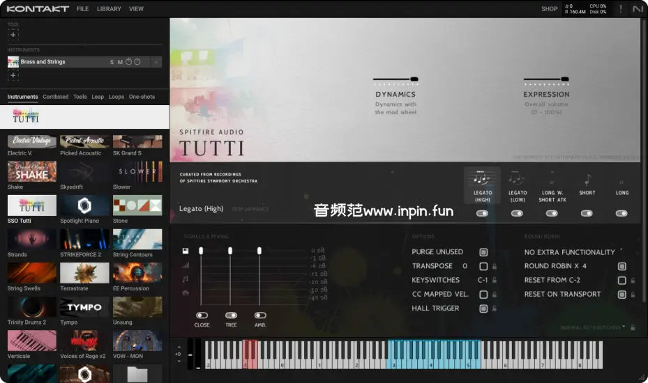 - SSO Tutti 在采样过程中高度关注交响乐队的动态范围,从轻柔的pianissimo到强烈的fortissimo,捕捉到了完整的动态变化。这样,用户可以通过力度控制,创造出非常具有表现力的演奏效果。