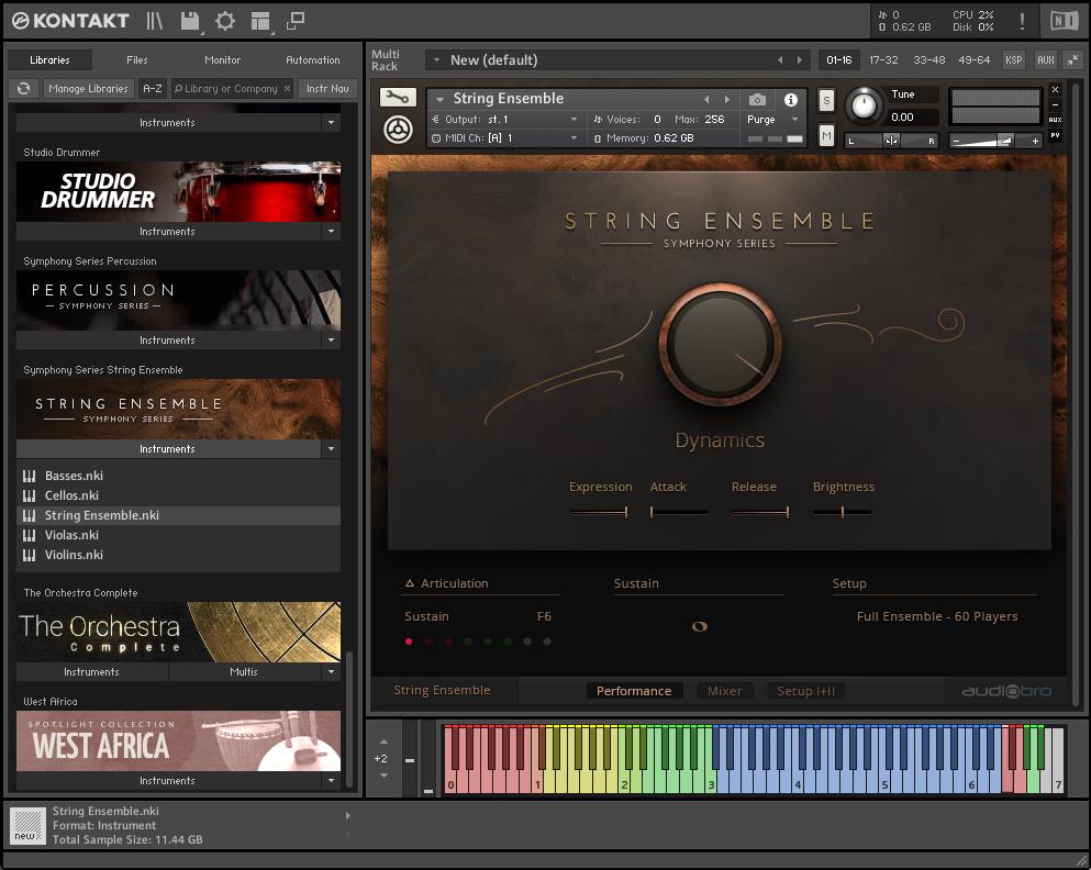 真正的复音连弓和滑音功能、两部分自动分奏以及四个麦克风混音,STRING ENSEMBLE提供了精确、用途广泛的声音,成为现代和电影作曲混音中必不可少的细节。