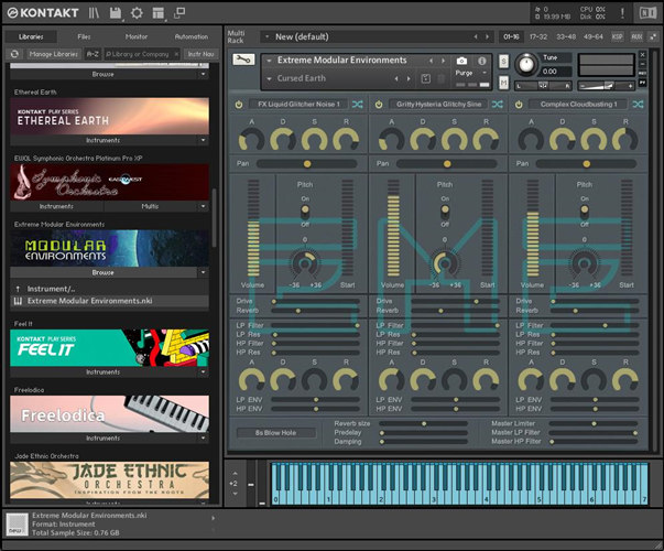 极端模块化环境附带 130 多个特别策划的快照,这些快照是作为仪器的起点创建的。这些快照已被分类为各种类型的声音,例如大气,键,打击垫,主音,复合合成器,低音和FX。