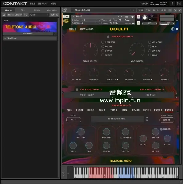 Soulfi 适用于Kontakt 6.8或以上版本,是一款体积小、性能强大的工具,特别适合需要复古鼓音色的音乐制作人。