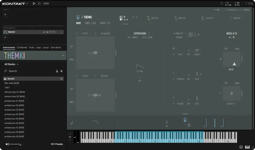 themkI 不只是一个静态采样音源,而是具备许多可交互 /可变机制,下面是它的主要功能与用户操作特点: