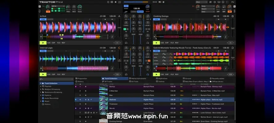 - Traktor Pro 4 的用户界面经过重新设计,提供了更直观的工作流程。界面更加简洁易用,允许 DJ 轻松访问所有主要功能和控制。