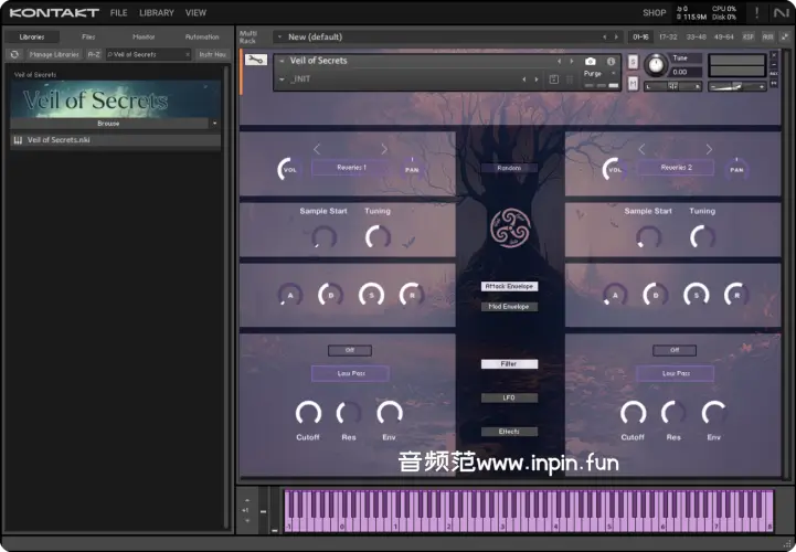 - 灵感丰富的音色库:Veil of Secrets 包含了多种与神秘、梦幻主题相关的音色,从柔和的背景和声到细腻的弦乐和低音层。音色库中每个音色都充满了情感张力和情绪感染力,适合搭配情感表达需求高的音乐场景。