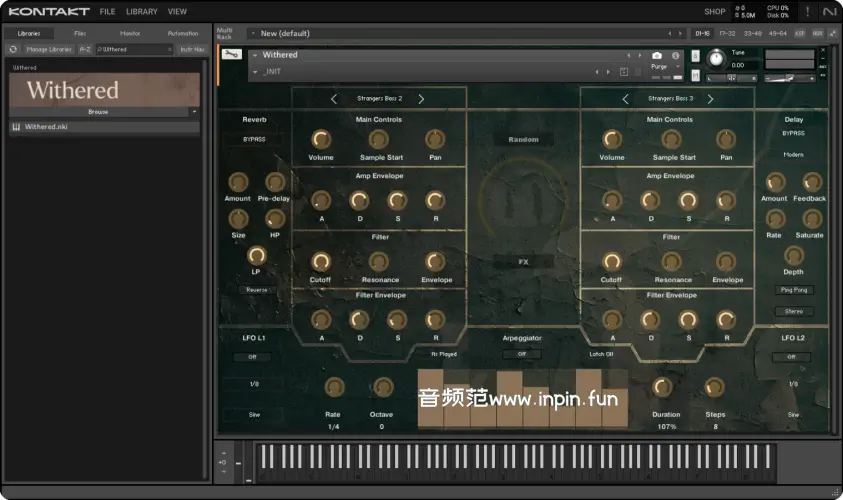 Triple Spiral Audio Withered 是一款为 Native Instruments KONTAKT 设计的独特声音库,着重营造一种阴郁、荒凉和颓废的氛围。该音源包含精心设计的声音采样,非常适合用于恐怖片、悬疑剧、黑暗氛围音乐和任何需要暗黑、神秘色彩的作品。