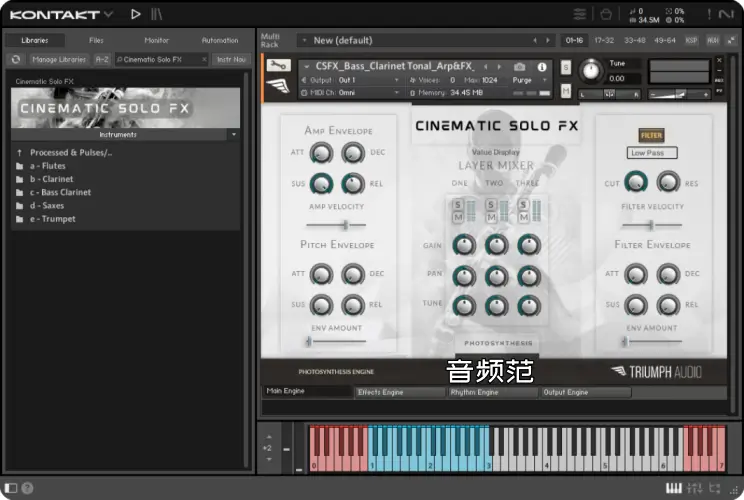 Cinematic Solo FX 运行于 Kontakt 平台,并使用 Triumph 自研的引擎对样本进行实时处理:
