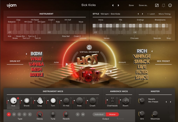 uJAM Virtual Drummer HOT 是一款专为流行音乐制作设计的虚拟鼓手插件。它提供了一系列真实的鼓声表现,结合了鼓机般的处理能力,让你的音乐作品中的鼓声更加生动和有力。以下是一些关键特点: