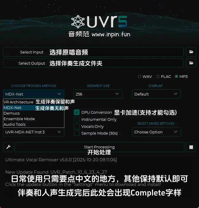 UVR 集成了多种音源分离模型(如 MDX、VR、Demucs 等),你可以根据音频类型选择最合适的模型,例如: