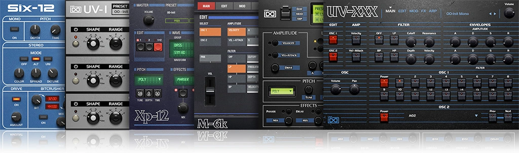 - UV-XXX:一款包含了 OB 合成器第一波的声音的合成器,包括 OB-X,OB-Xa 和 OB-SX。这些合成器都有着浓郁而强大的声音,经常被用于流行,摇滚和电影音乐中。