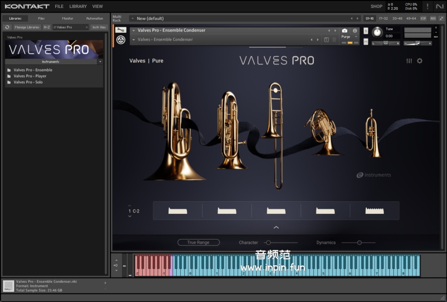 柔和、不断变化的 Valves Pro 提供了优质的长号、次中音号、圆号、大号和上低音号声音以及扩展后的演奏技法库