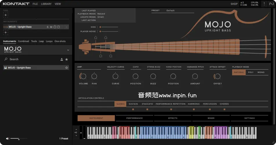 MOJO: Upright Bass 的音色库旨在模拟 真实立式贝斯 的每个细节,包括弓弦演奏、弹拨音、音量控制和自然的音色变化。通过高质量的样本采集和细致的调音,用户可以体验到几乎与真实乐器相同的演奏感觉。