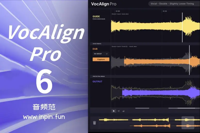 - 自动音频对齐:VocAlign 6 Pro 可以通过分析参考音轨(Guide)和需要同步的音轨(Dub),自动将两个音轨的时序对齐。它能够智能识别并匹配音符、语音节奏等,使两者的时间线完全同步,减少手动调整的工作量。