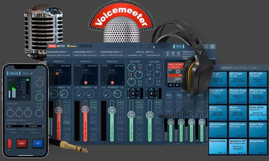 VOICEMEETER将任何音频硬件与任何软件声音连接并混合到多个输出。连接耳机,USB麦克风,声卡,Skype,游戏声音,视频播放器,ZOOM你的名字。