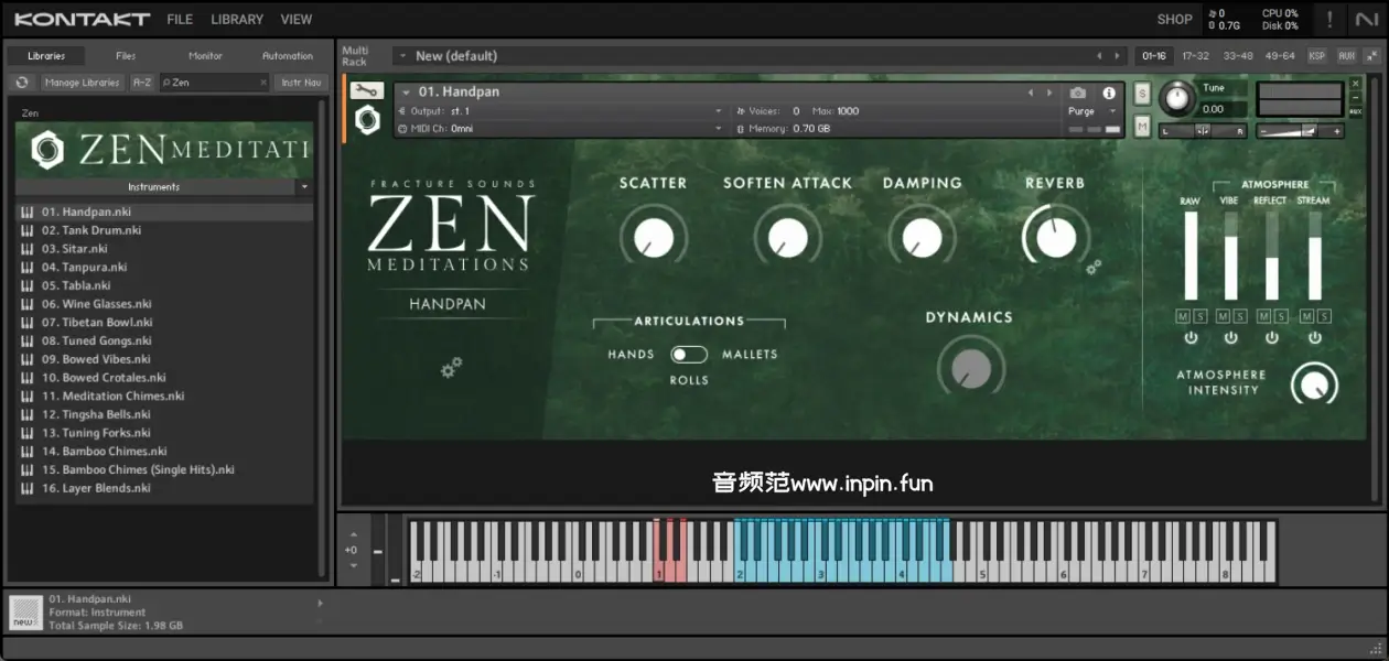 - 深度采样:Zen Meditations 采样了钢琴、颂钵、木质打击乐器等多种声音源,提供了高质量且富有情感的声音。